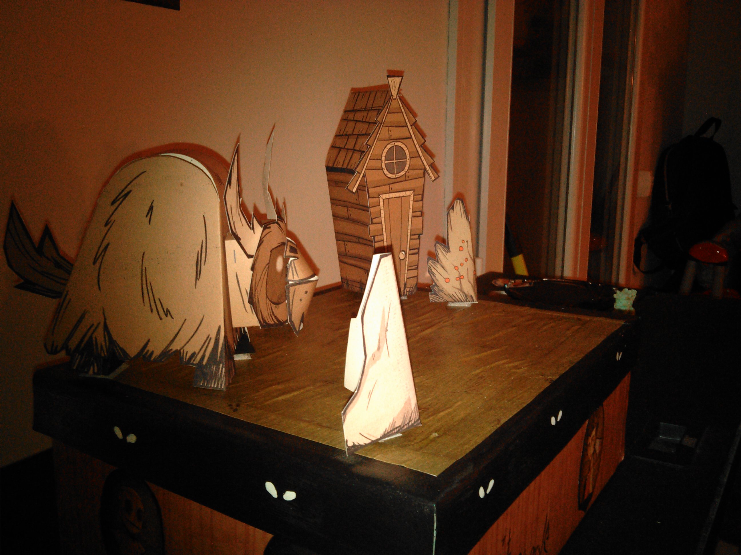 Comme le jeu est complètement dématérialisé, j’ai voulu lui créer une version collector fait par Papa et Maman qui s’est greffé au projet un peu plus tard. Je lui est donc acheté le Jeu, sa bande originale et trois figurines de collection sur la boutique du jeu. Mais pour que cela soit vraiment collector je voulais quelque-chose en plus que lui seul aurai, j’ai donc contacté par courriel les dévelloppeurs du jeu pour leur demander une photo de wilson son personnage préféré, avec un petit mot pour lui. Ils se sont montrés très enchanté par cette demande et en retour ils m’ont envoyé plein de goodies, de quoi faire un diorama, poster géant etc..